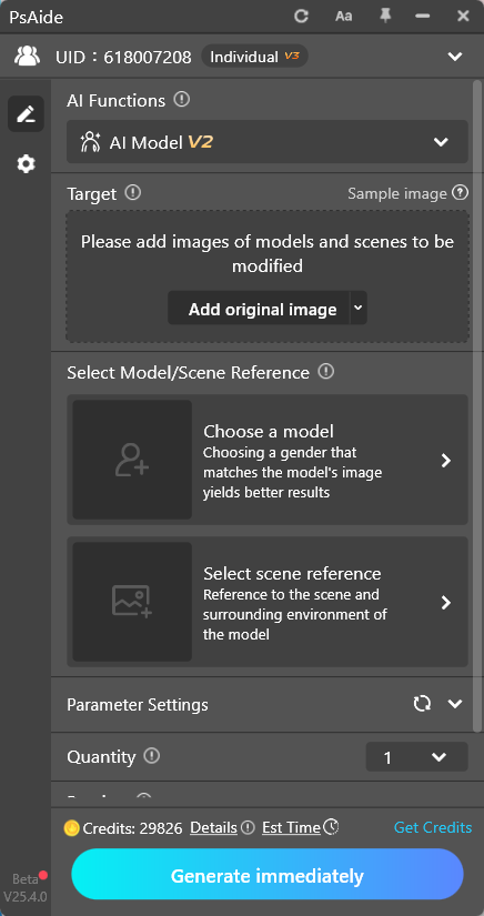 - Parameter adjustment: You can select whether to intelligently match the model position