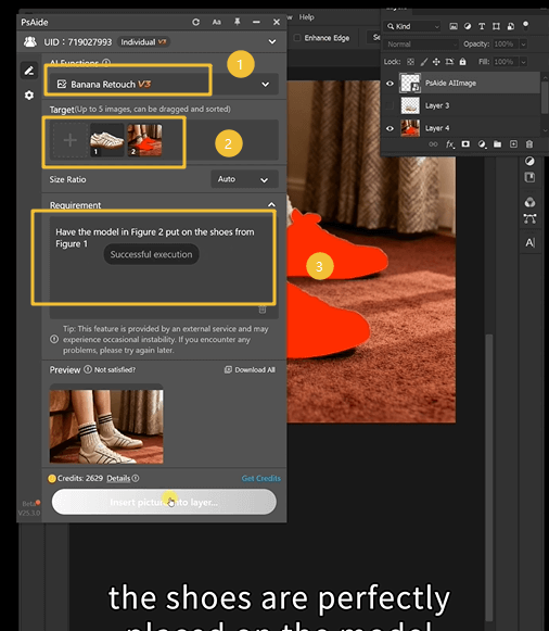 Meet Banana Retouch, a feature in the PsAide plugin—powered by Nano Banana! This tool makes sneaker swaps a breeze. No pro design skills required.