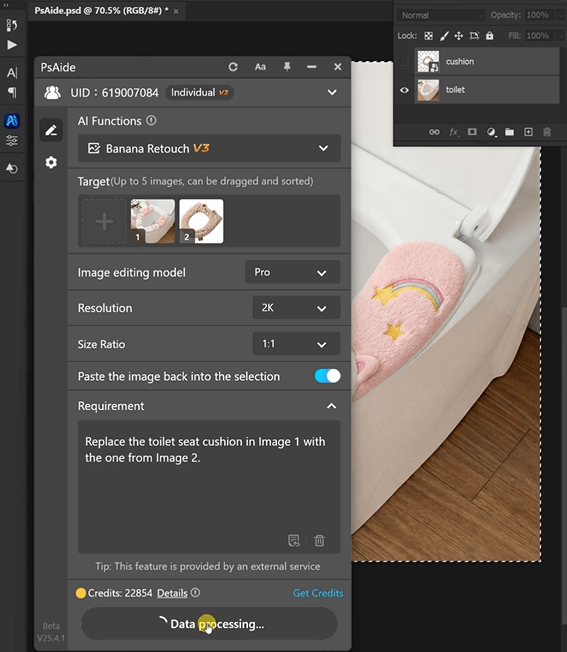 Creating toilet seat product images in real bathroom scenes often requires manual editing or staged photography. With nano banana, you can quickly place a toilet seat cover product into a scene image by uploading two images and generating the result automatically.