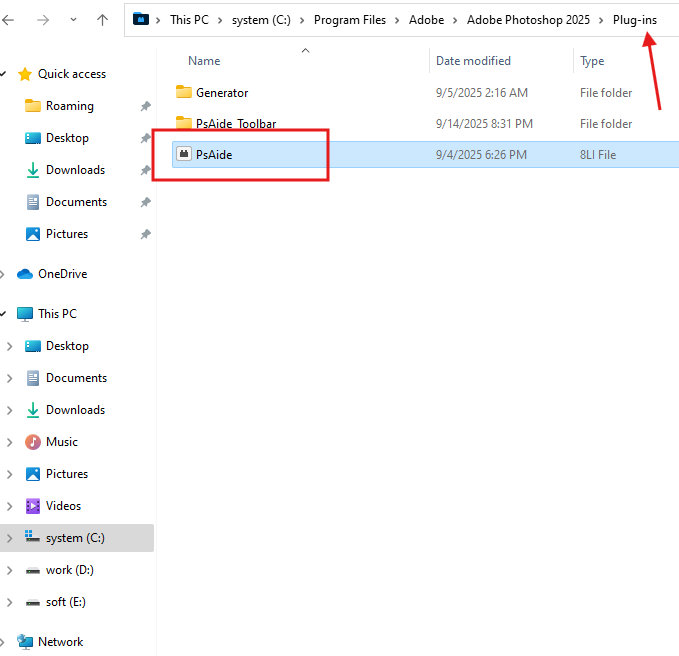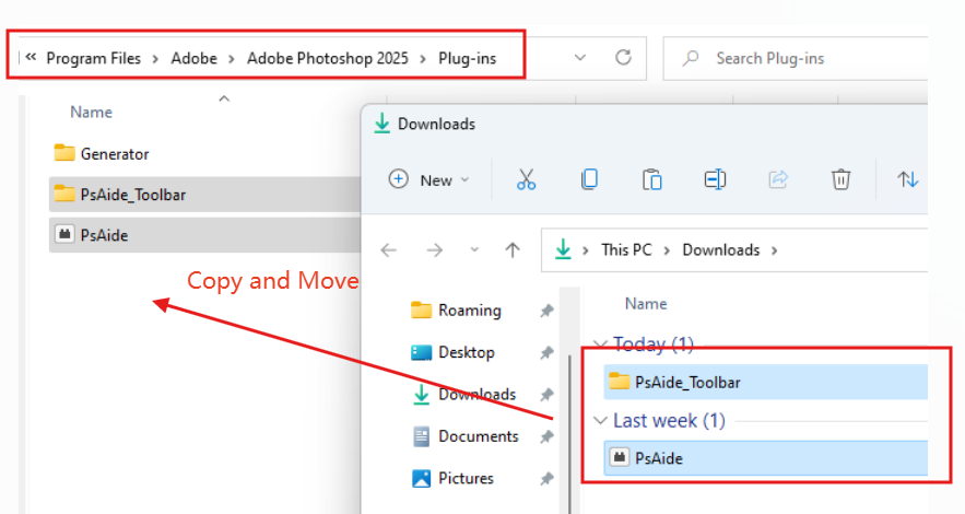 - If you installed PSaide first and then Photoshop (with Photoshop installed on the C drive), and set the Photoshop directory in PSaide, the plugin files may fail to copy to the C drive due to administrator permission requirements.