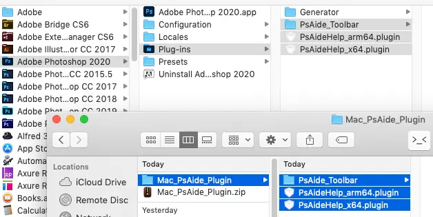 Manually download the PSaide plugin files and move them to the Photoshop plugin directory. Click to access the tutorial.