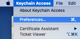 - After launching Keychain Access, click “Keychain Access → Preferences…” in the top-left corner.