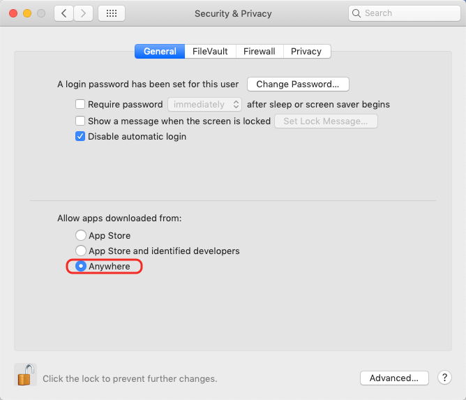 Open “System Preferences — Security & Privacy — Security” or “General” tab to check if the “Any Source” option is enabled.