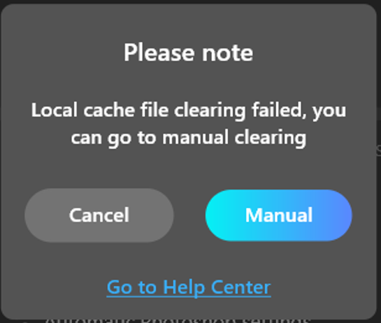 Click the “Manual Clear” button to open the folder and delete cache files manually